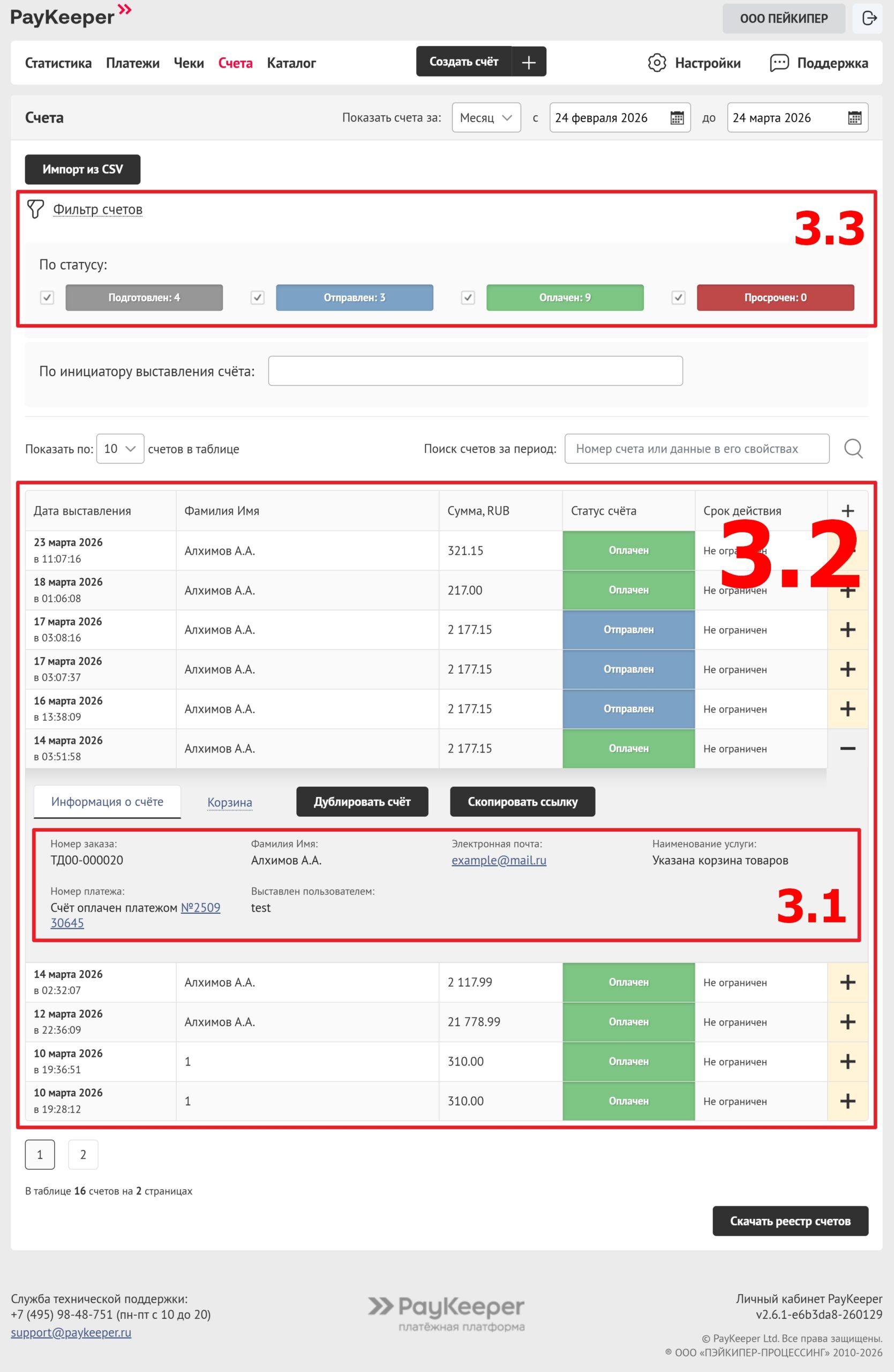 Личный кабинет PayKeeper — Раздел счета